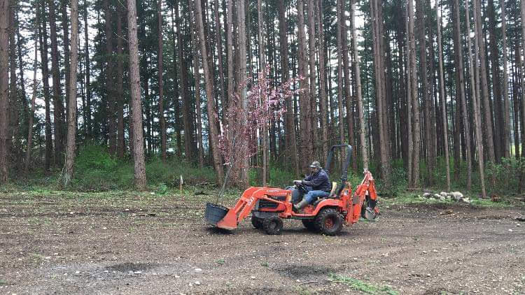 Additionally, Jeff rented a 5 ton excavator to push over the remaining trees and remove all the stumps. He used this machine to pile the stumps and then ran out of rental time. He asked himself “Why put all the money into a rental when I can own.”
